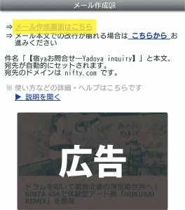 ご自身のスマホでQRコードを読み取ると、自動でメールソフトが立ち上がります。(最初の広告画面は↓↓をクリック)